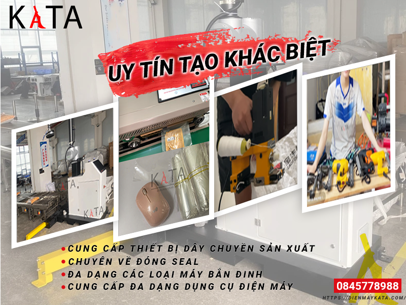 KATA cung cấp các giải pháp điện máy hiện đại, góp phần tối ưu quy trình sản xuất và nâng cao hiệu quả vận hành cho doanh nghiệp. Chúng tôi phân phối đa dạng thiết bị như máy dán seal, máy bắn đinh cùng nhiều giải pháp hỗ trợ dây chuyền sản xuất, đáp ứng yêu cầu về chất lượng, độ bền và tính ổn định trong quá trình sử dụng.