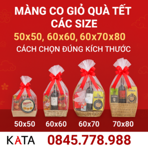 Màng co giỏ quà Tết các size 50×50, 60×60, 60×70, 70×80 – Cách chọn đúng kích thước