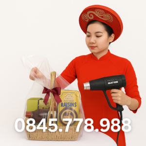 Cách gói giỏ quà Tết đẹp với màng co và máy khò nhiệt – Đơn giản trong 3 phút
