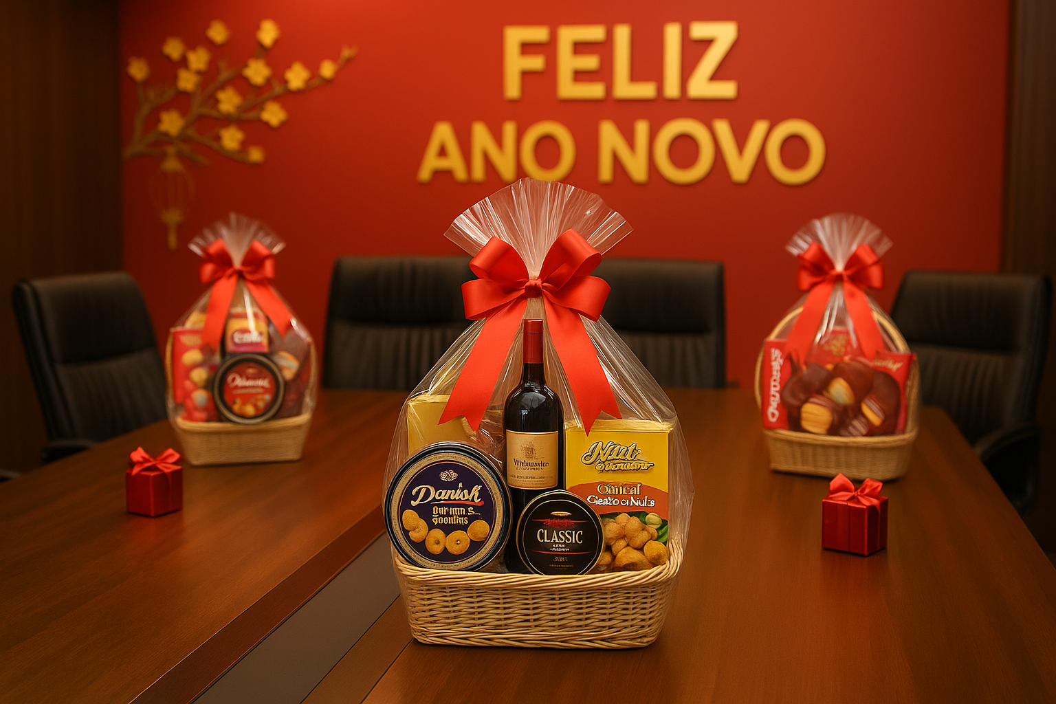 Trang trí thêm nơ, thiệp chúc Tết hoặc ruy băng để tăng phần ấn tượng.