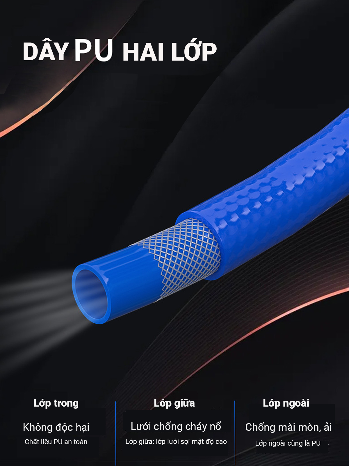 | Chất liệu dây | PU chịu áp lực cao |