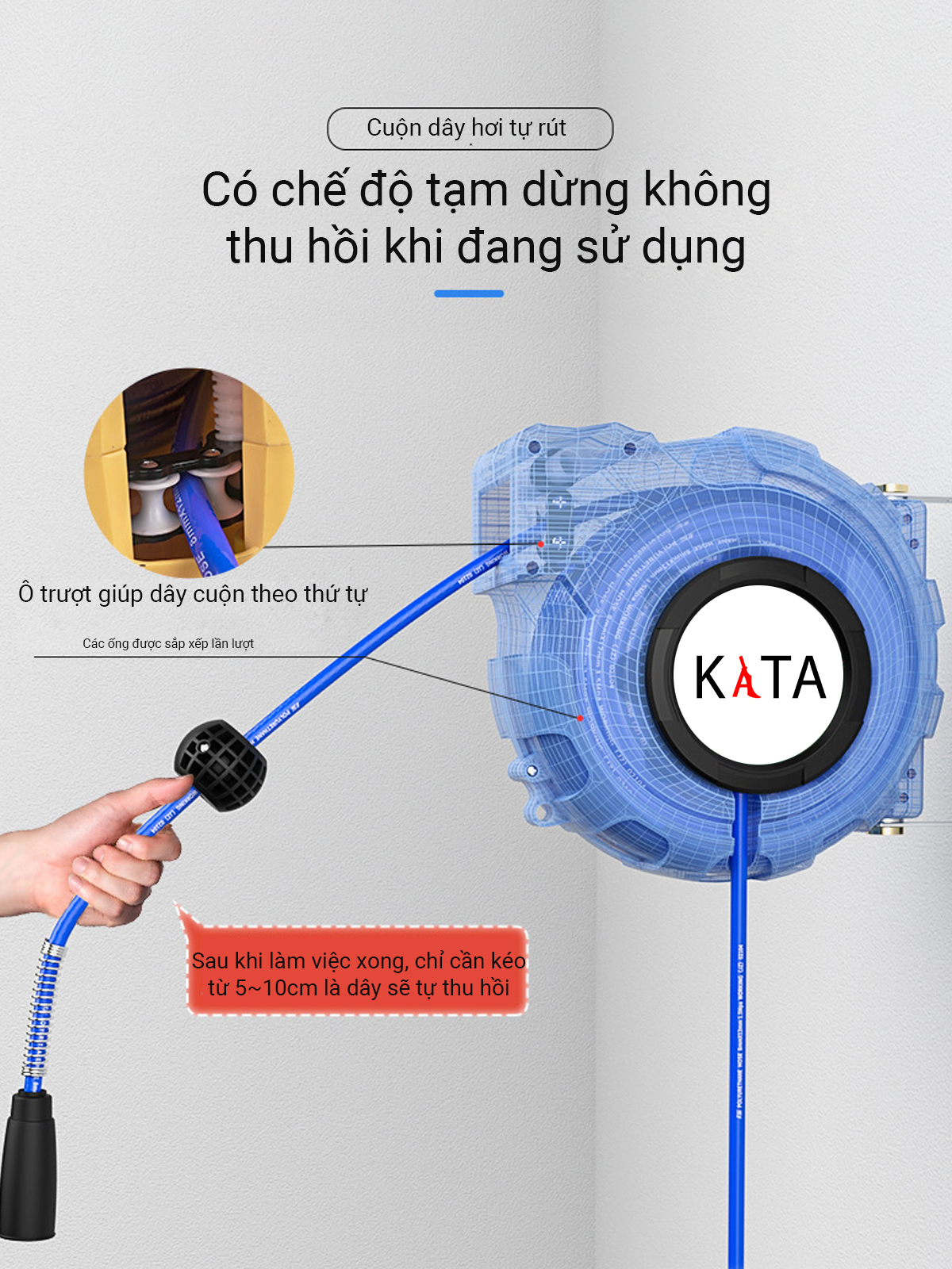 CUỘN DÂY HƠI TỰ RÚT (12+1M) KATA – CHỊU ÁP LỰC CAO, BỀN BỈ, TỰ THU GỌN TIỆN LỢI