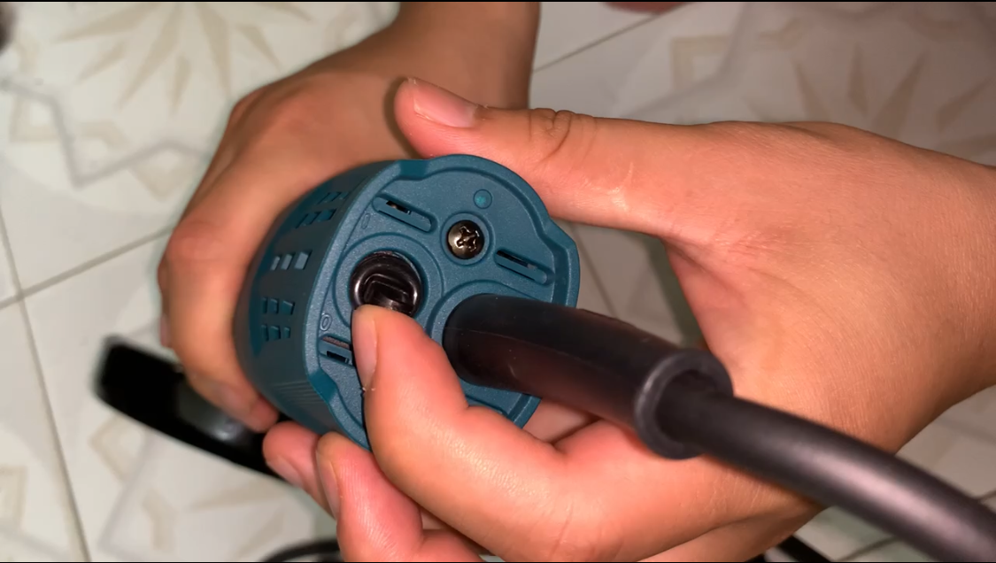 Máy sử dụng công tắc đuôi thay vì công tắc hông. Khi làm việc thực tế, thiết kế này giúp hạn chế bụi sắt lọt vào công tắc, đồng thời tránh tình trạng vô tình chạm phải khi đang sử dụng.