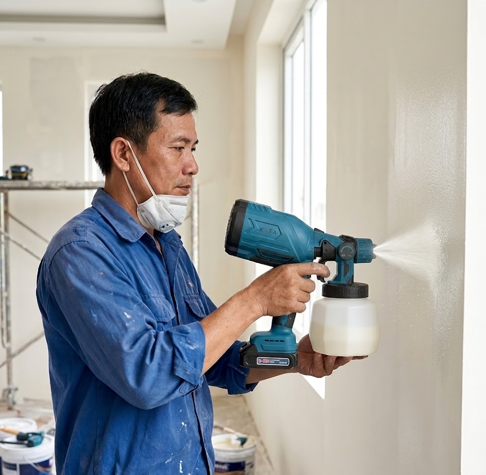 Máy phun sơn dùng pin Kata 3-71L – không dây, phun mạnh, tiện lợi cho mọi công việc sơn