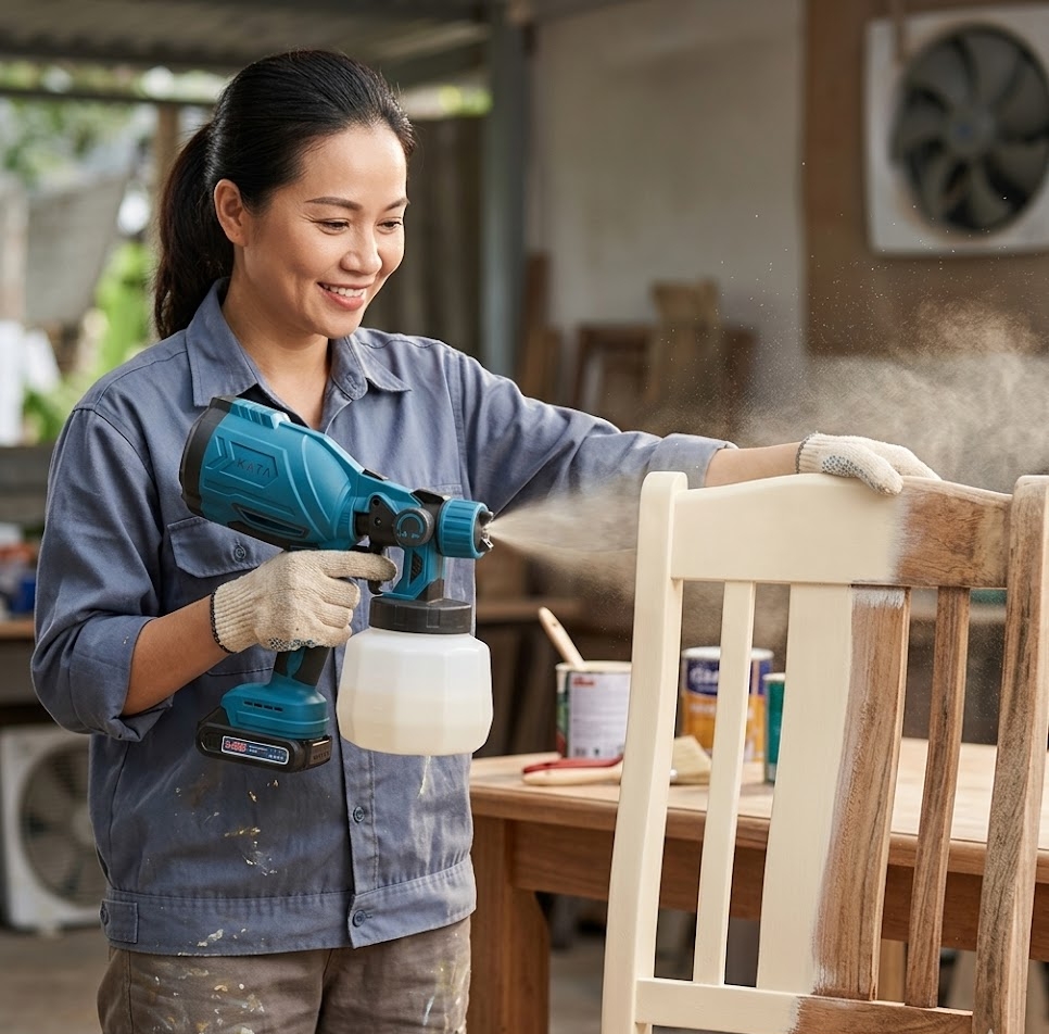 Với các công việc sơn sửa trong nhà hoặc ngoài công trình, việc kéo dây điện hoặc dùng máy nén khí thường khá bất tiện và tốn thời gian chuẩn bị. Đặc biệt với những công việc nhỏ hoặc cần di chuyển nhiều, sự linh hoạt là yếu tố quan trọng hơn cả.