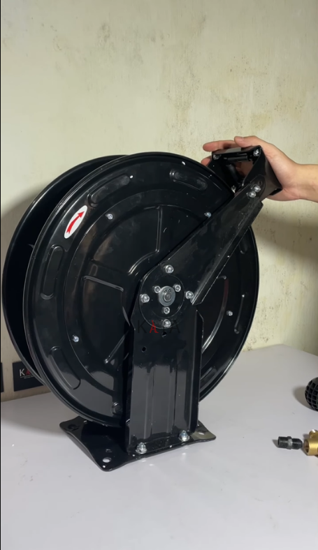Trong quá trình rửa xe, nhiều người đầu tư khá kỹ cho máy xịt áp lực, béc phun, dây dẫn và phụ kiện. Nhưng khi bắt đầu làm việc hằng ngày mới thấy rõ một điểm rất thực tế: phần gây vướng nhất không phải máy, mà lại là dây. Dây kéo lê dưới nền, xoắn, gập, bẩn và mất thời gian thu gọn sau mỗi ca làm.